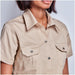 Crafted for comfort and durability, this Ladies Short Sleeve Bush Shirt is made from 100% cotton twill with a lightweight 150 g/m² fabric. The breathable cotton construction ensures all-day comfort, making it perfect for outdoor activities, corporate uniforms, or promotional wear. Featuring a structured button-down front, two chest pockets with button flaps, and a classic collar, this shirt delivers a smart yet functional look.