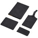 This travel set includes a passport holder, luggage tag, card holder, and money clip, elegantly presented together in a black two-piece gift box. Each item is securely held in place by a custom sponge tray, ensuring a stylish and organised presentation. The 4 items are designed for debossing branding with the same logo of the same size on each item, to save on producing multiple dies.