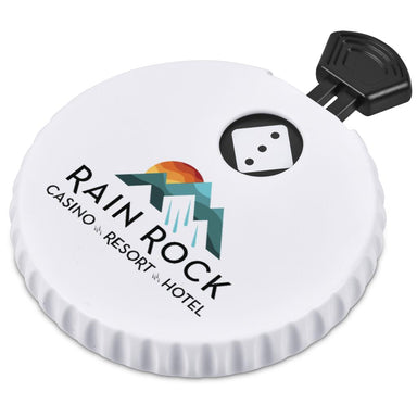 Press the button on this fun bottle opener to spin the disc inside. The window will then display a picture of a dice side, ranging from 1 - 6. So, ...