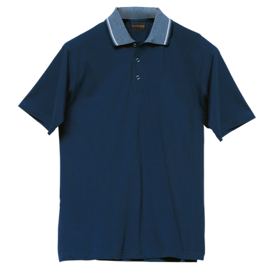 180 g/m² 53% cotton, 43% polyester, 4% spandex single jersey knitted collar three-button placket side slits standard fit