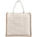 A strong and durable, large bag made from natural materials. The textured jute side panels provide an attractive contrast to the smoother cotton main panels, which can be branded with your logo or message.