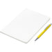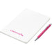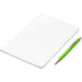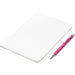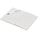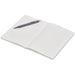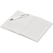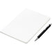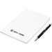 An economical notebook and pen set, especially suited for meetings, conferences and events. Packaging the notebook and pen in a pouch makes it easy to transport and to distribute these writing sets. This set consists of a white A5 notebook with a pen available in a variety of colours. The pouch has a stud button closure, and it’s made predominantly from recycled material.