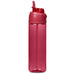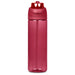 The innovative swig or sip lid design of this sporty water bottle gives you two drinking options: hold it upright to sip through the built-in flip straw, or tilt back to swig through the drinking port opening. Use the push-button to pop the lid open and enter one-handed swig mode. It’s equipped with a built-in handle that can be flipped up for easy carrying and flipped down to lock the push-button. The lid also has a clip-lock mechanism to keep it watertight when not in use, but easy to pop open when you need to hydrate.  Unscrewing the lid from the base reveals a wide mouth, which makes it easy to load ice or fruit into your water. The bottle base is made from clean, BPA-free recycled PET plastic.