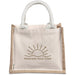 A strong and durable, small bag made from natural materials. The textured jute side panels provide an attractive contrast to the smoother cotton main panels, which can be branded with your logo or message. A reusable alternative to disposable gift bags.